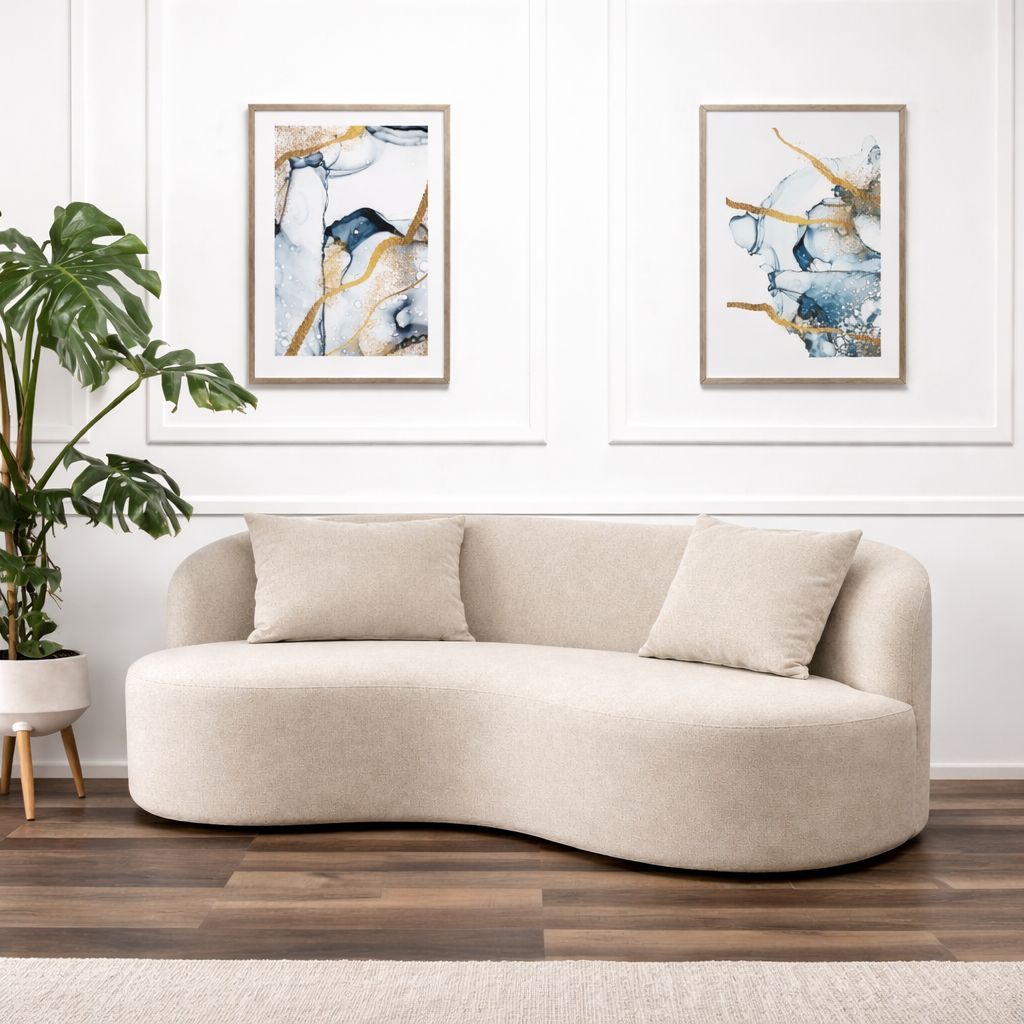 De tres cuerpos y 181 cm de ancho, el Sofá NOVA destaca por su diseño orgánico y silueta curva que aporta un sello contemporáneo y sofisticado al living. Su forma envolvente, respaldo continuo y apoyabrazos integrados crean una estética armónica desde cualquier ángulo, mientras que su profundidad de 117 cm permite una postura más relajada y cómoda.