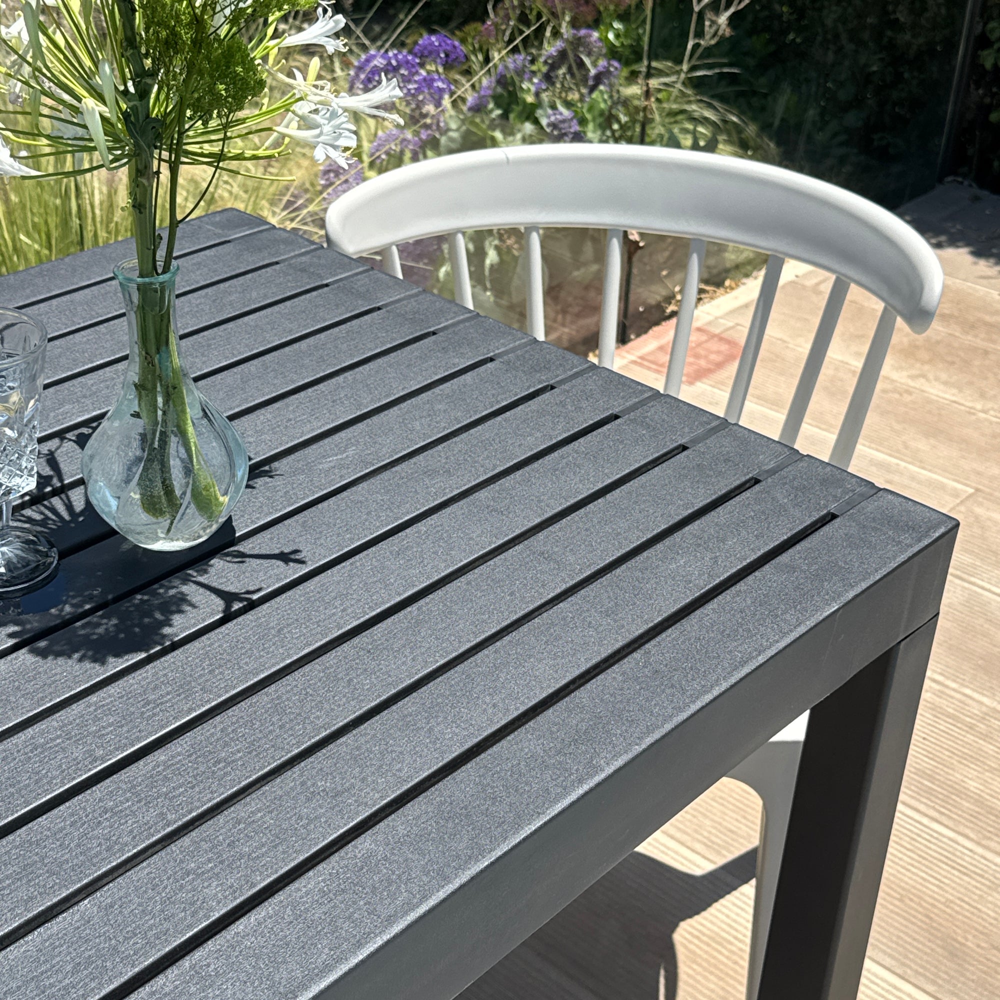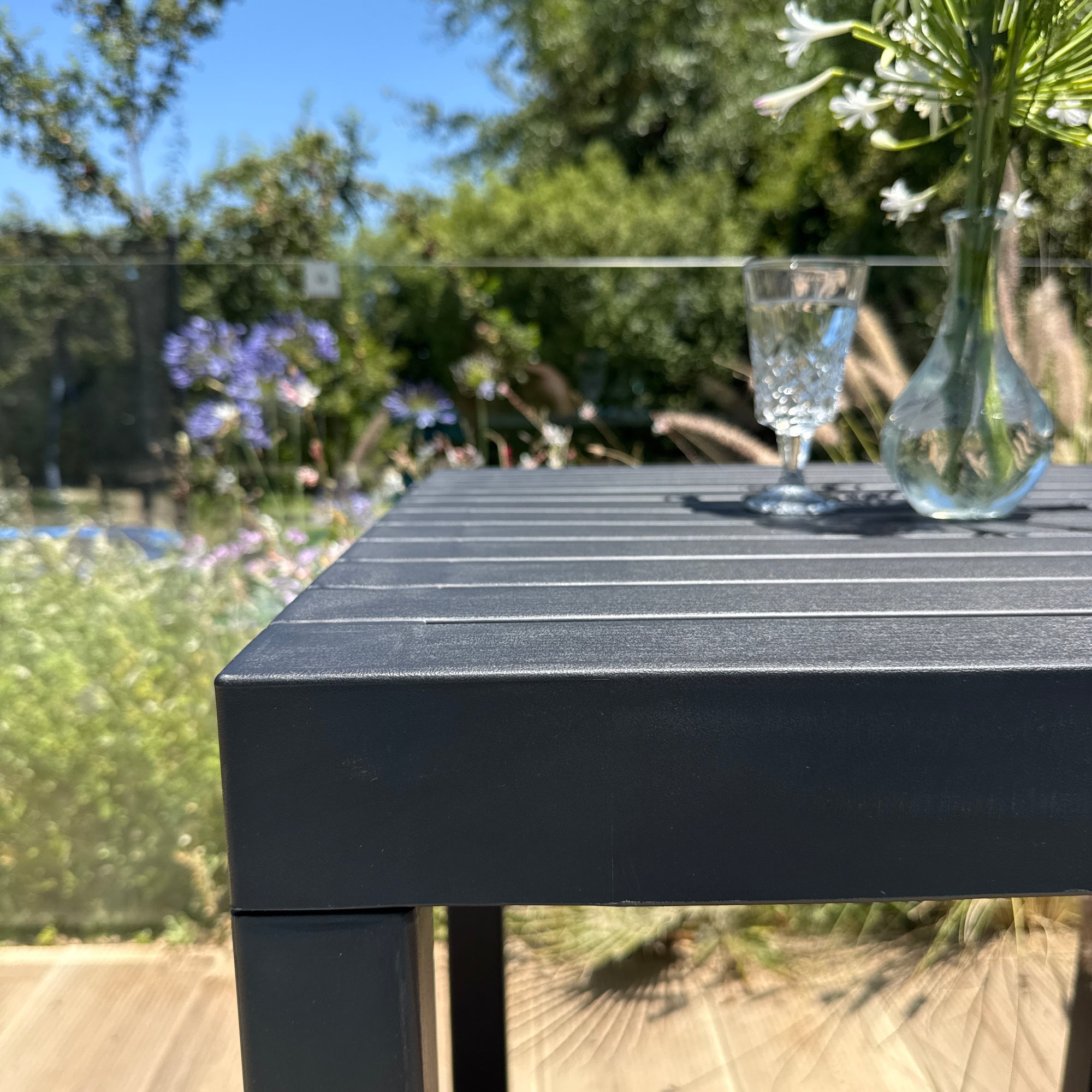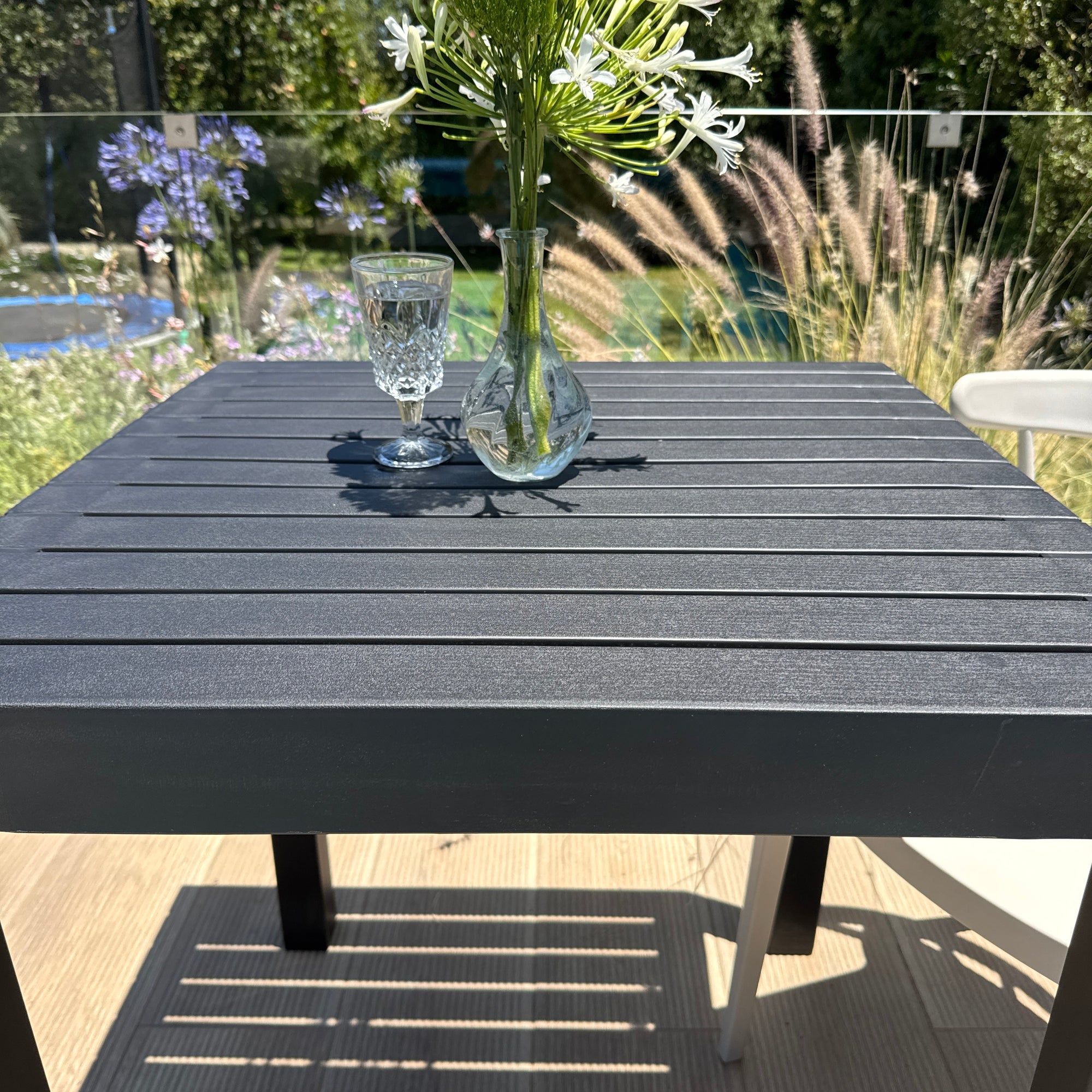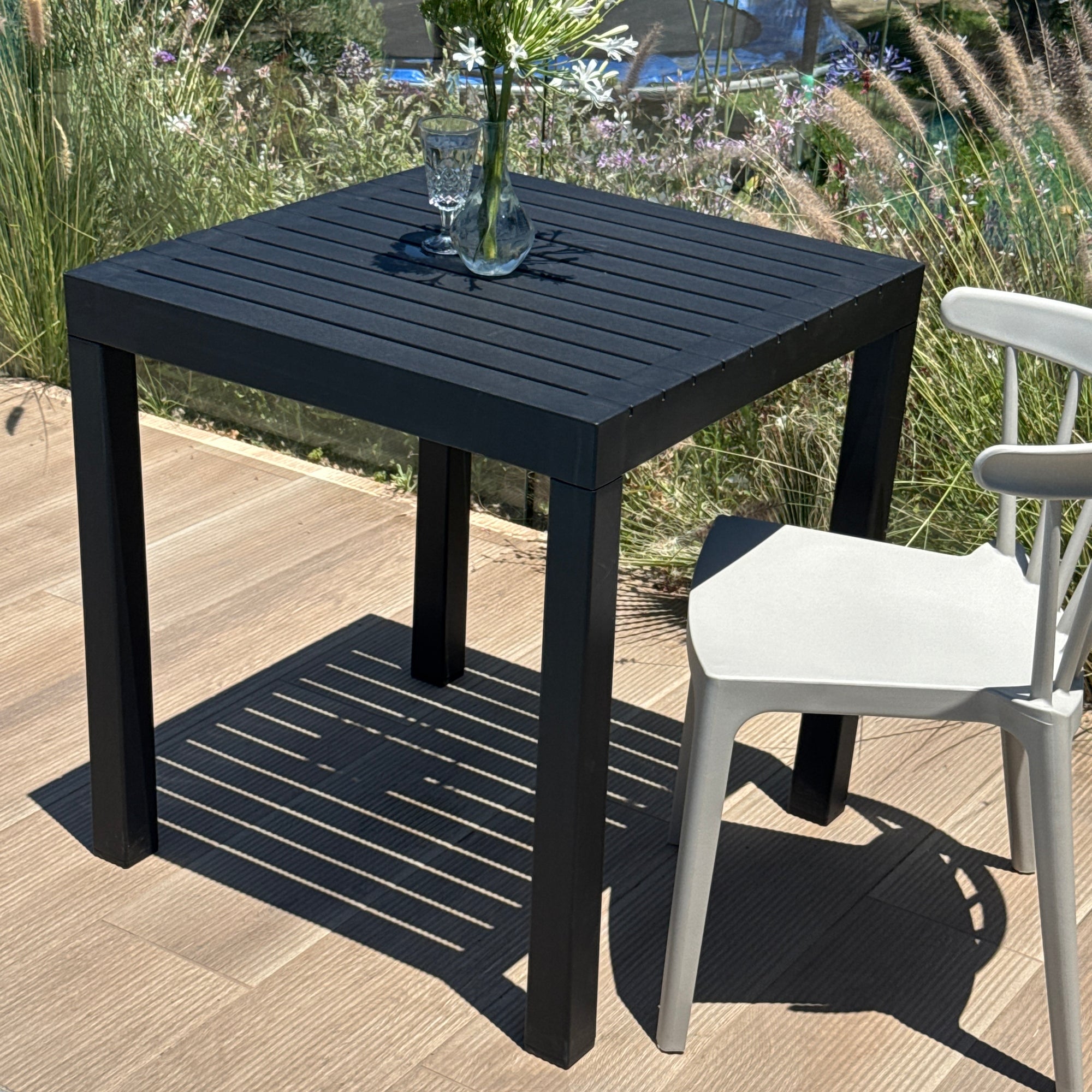 Con un diseño moderno en negro mate, esta mesa combina estilo y funcionalidad. Es ideal para disfrutar de tus espacios exteriores con comodidad. El polipropileno hace que sea resistente al clima y muy fácil de limpiar, posee filtro UV y es la opción perfecta para momentos al aire libre.
