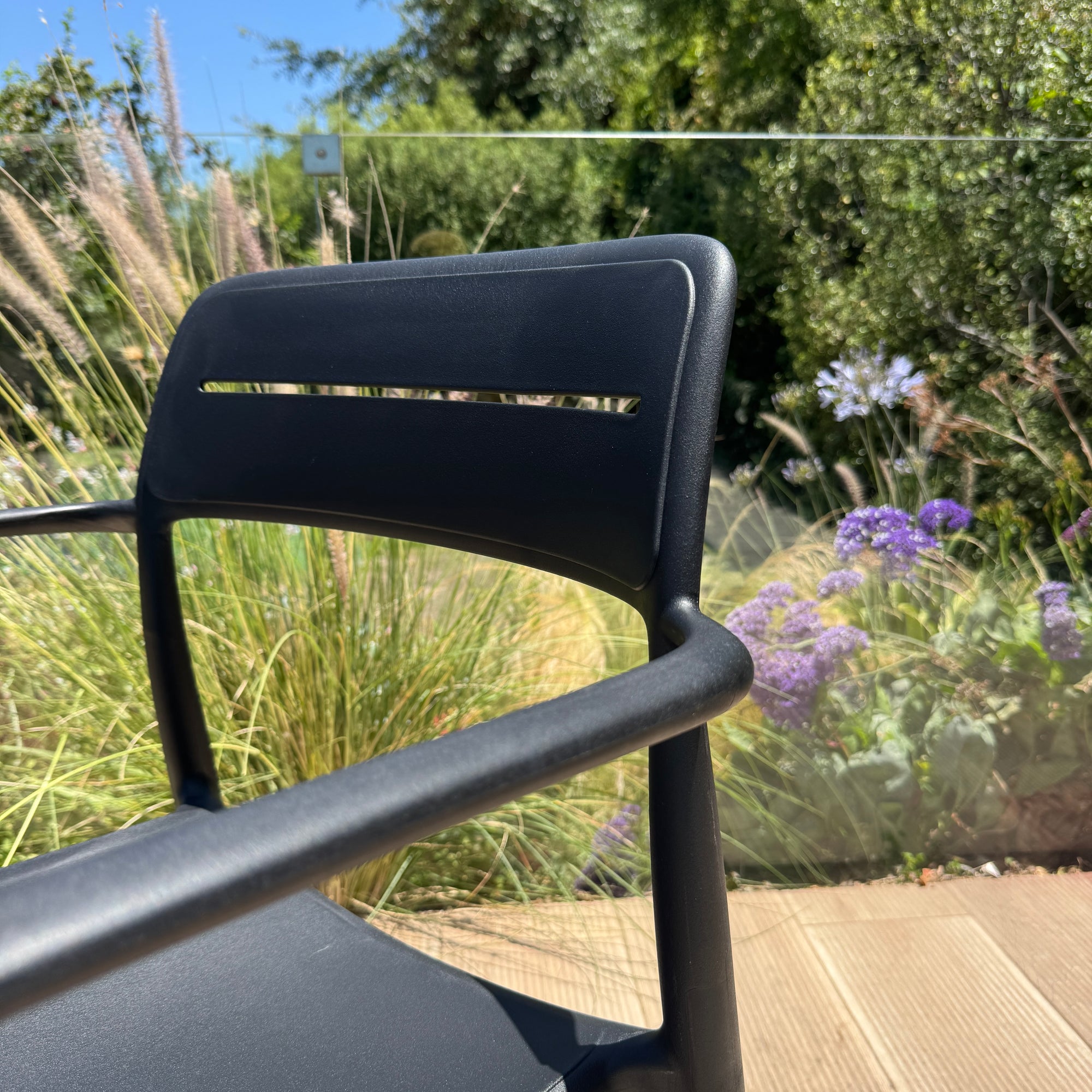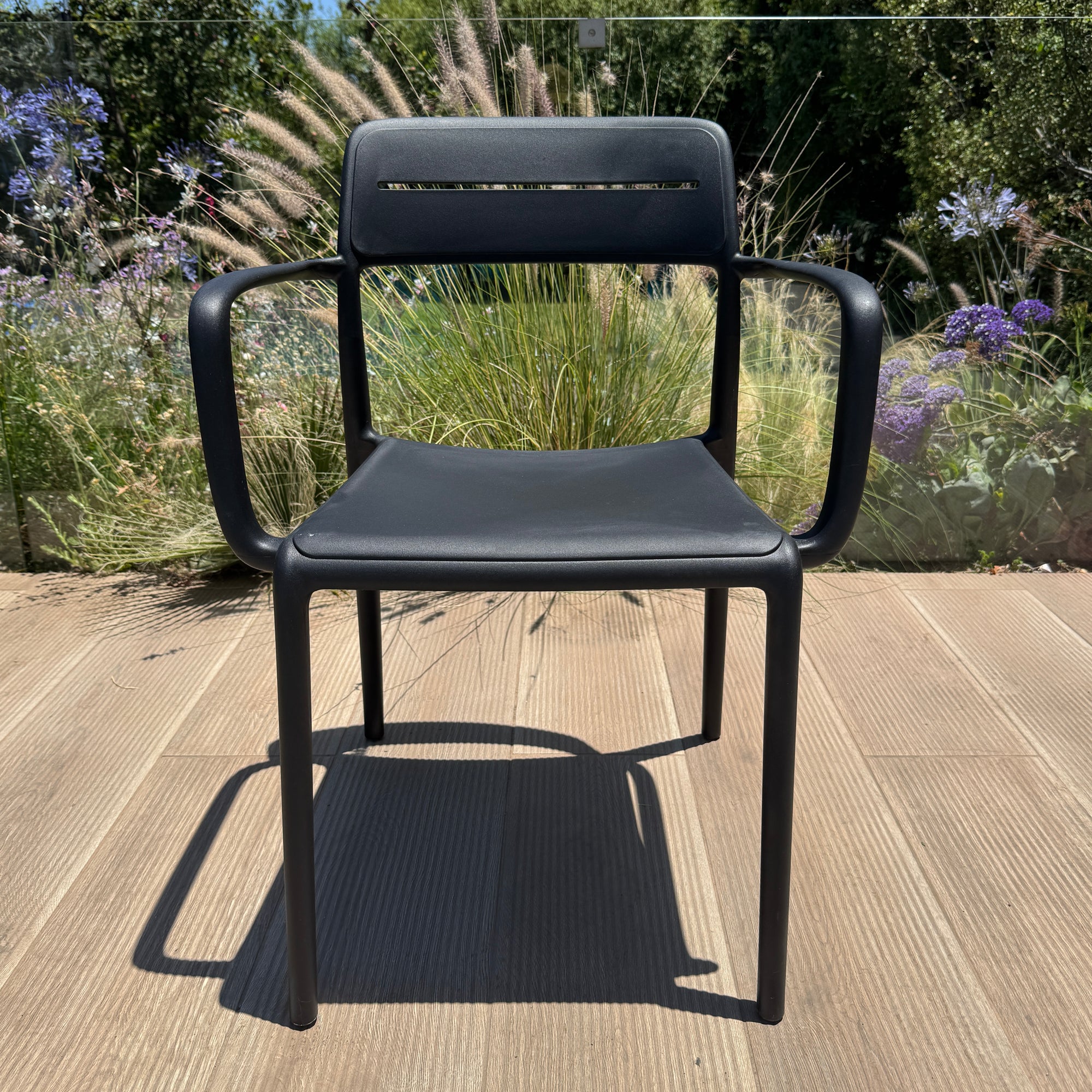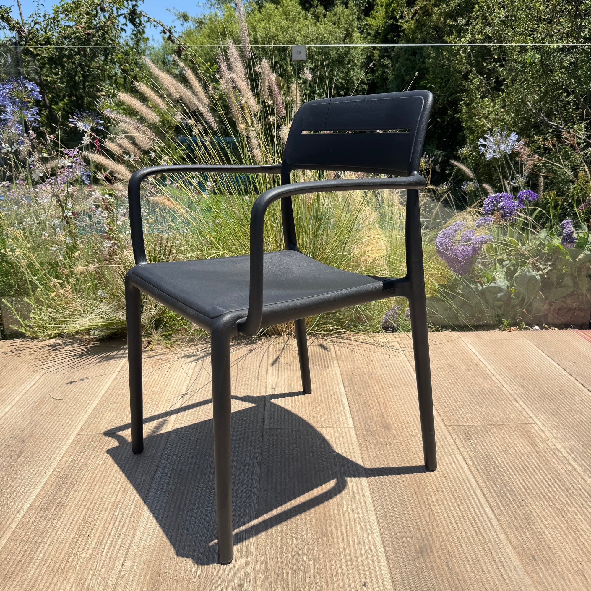 Silla multiaplicación apilable, construida de Polipropileno que incorpora Filtro UV. Perfecta para usos de exterior tanto en Hogar como en aplicaciones profesionales de alto tráfico. Su postura relajada ofrece gran confortabilidad al usuario. Destaca su respaldo ergonómico envolvente que permite complementariamente el apoyo de brazos.